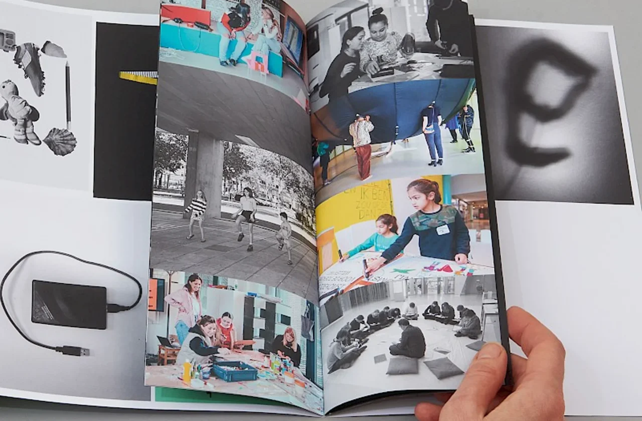 Perhaps nowhere is de Vries’s responsive approach more evident than in her innovative typography project for the New Institute in Rotterdam’s children’s department. Inspired by early Disney animation where cartoons interact with real people, she transformed what could have been a standard institutional identity into a collaborative typography workshop.