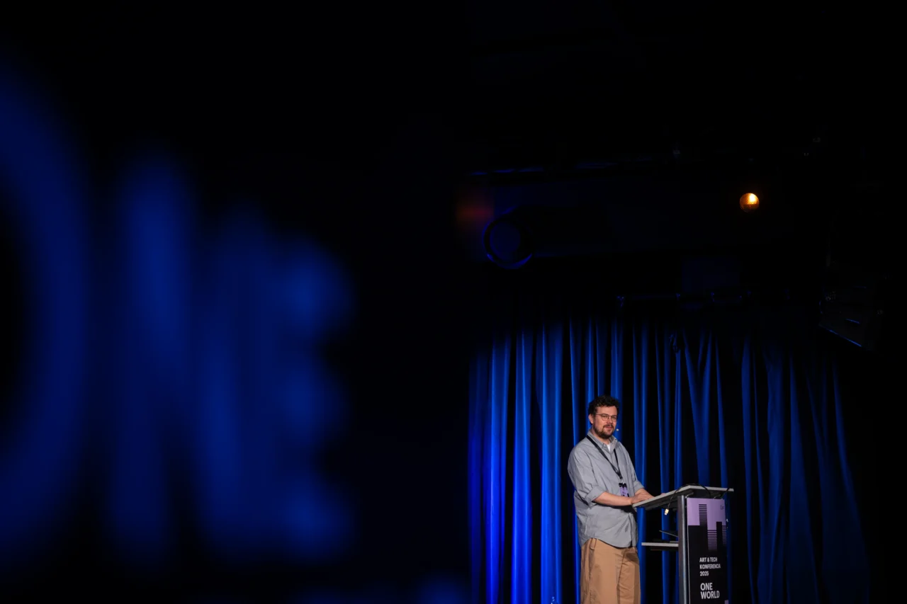 From there, the keynote mapped the contemporary condition: doomscroll culture, attention fracking, AI slop, accelerationism, algorithmic control. A world that has optimized work into competition, time into throughput, art into content, and money into centralized returns.