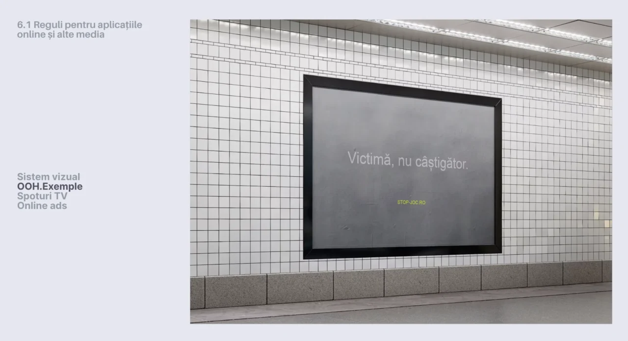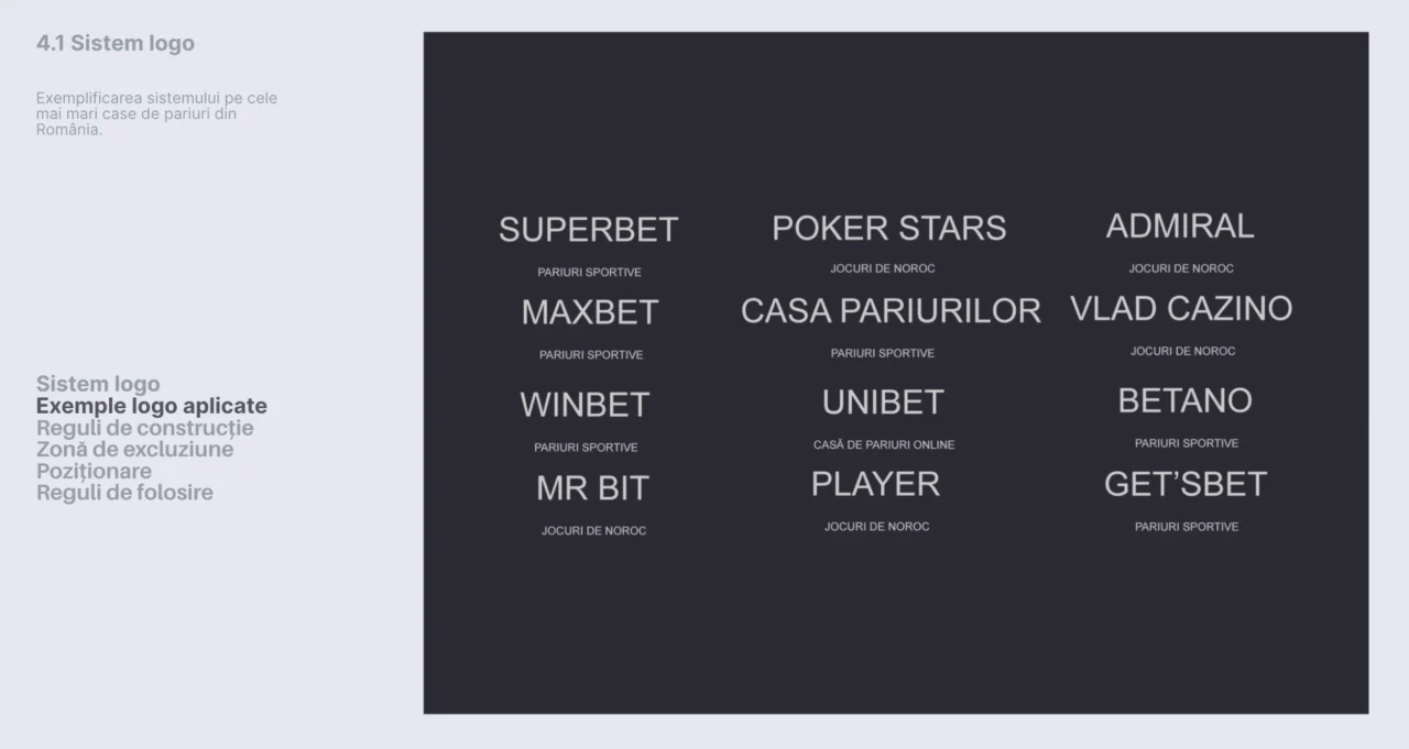 Ne-am închipuit acolo cum ar fi o strategie de brand și un redesign de identitate de brand care să funcționeze ca o frână pentru industria jocurilor de noroc, care să dez-seducă tinerii să mai joace. Cum arată o identitate vizuală care spune STOP! și nu Hai! Cum vorbește o industrie care vrea să nu mai facă rău societății, care vrea să se auto-saboteze întru bine, să se limiteze ca să fie mai bună cu oamenii alături de care trăiește. A ieșit un material extensiv despre gândirea din spate și un manual de brand așa cum n-am mai făcut dar cum ar trebui să fie se implementeze de urgență în România.