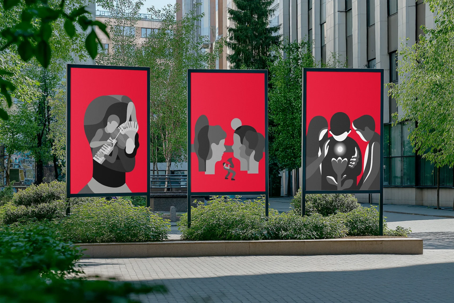 From there, the BRD Culture campaign expanded into a visual and communication system built to travel across formats and contexts without losing force. For the 2025 image campaign, we collaborated with artist Sașa Lazăr, whose illustrations gave the platform its own charged, contemporary atmosphere. Music, theatre, film, contemporary art, BRD’s own cultural entities like Scena9 and Rezidența9, all of it could live inside the same world. The rollout was designed as a real ecosystem: OOH and DOOH, BRD owned media, branch windows and tower façades, event kits, digital and TV video, landing pages, PR and social amplification, special projects, merch, artist videos, and on-the-ground cultural touchpoints. The result was not just visibility. It was unity. Less sponsorship wallpaper. More platform. More authorship. More public presence. You can explore BRD’s cultural vision at brd.ro.