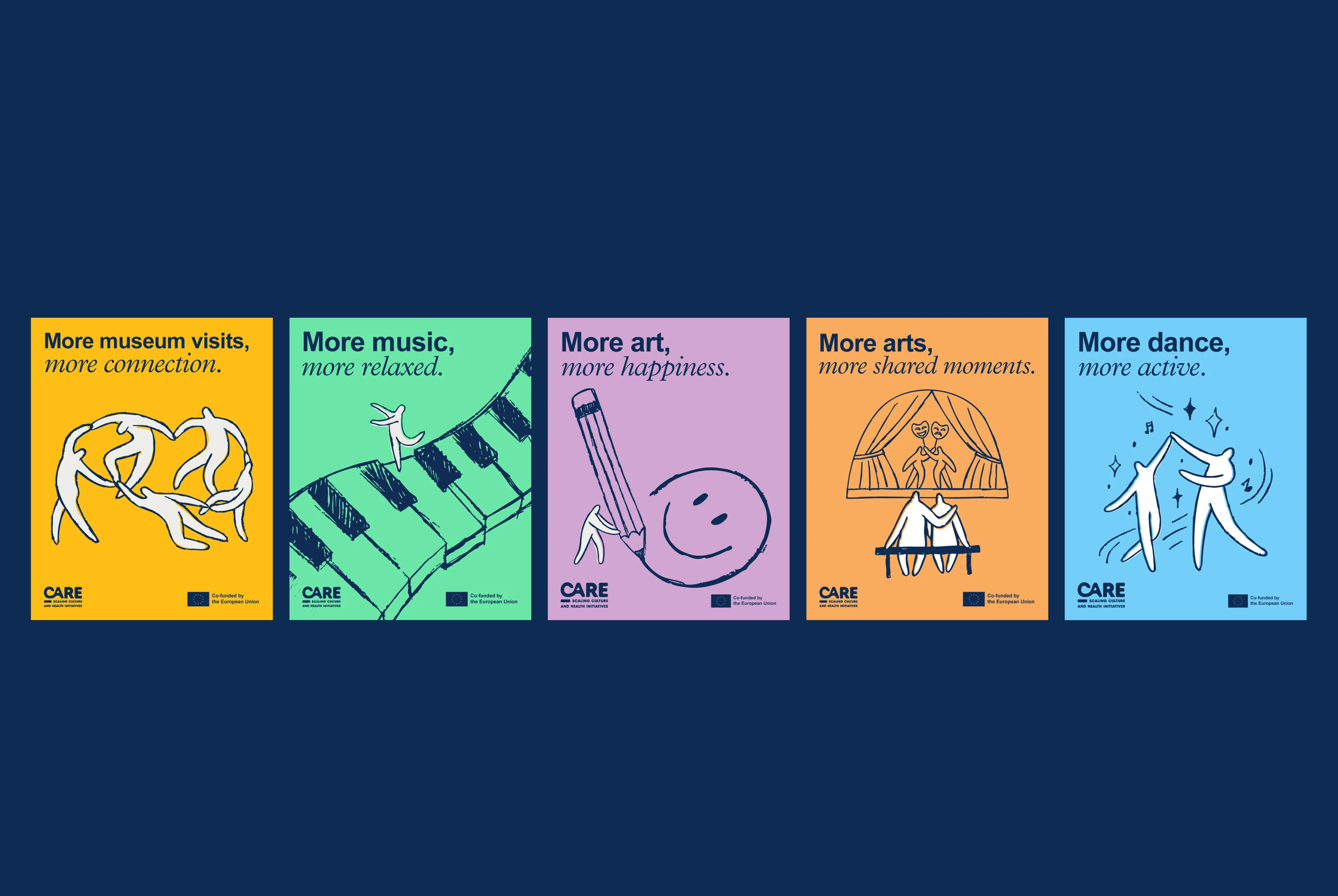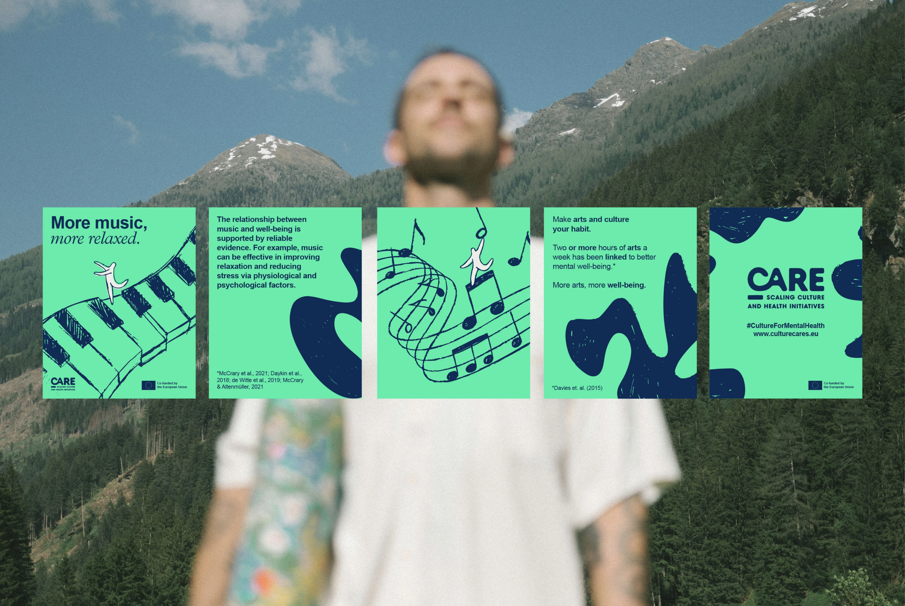 CARE arts culture mental health: CARE is an EU-funded initiative built on one underproven idea: arts and culture are not extras. They are infrastructure for mental health. The project brings together cultural organisations across six countries to document what culture can actually do, when taken seriously. They came to Glitch to turn academic evidence into something people feel. Not a public health announcement. Not institutional grey. Something warm enough, and visually sharp enough, to stop a scroll.