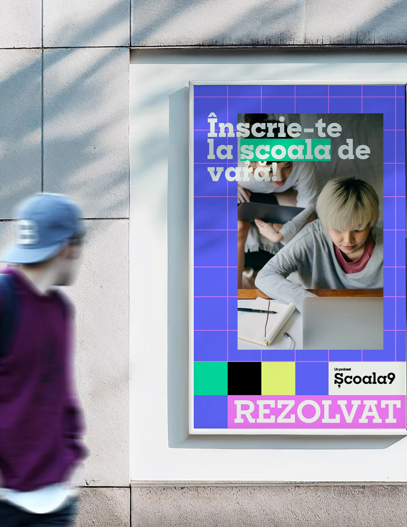Finally, we wrapped everything in a bullet-proof brand toolkit: colour specs, spacing logic, asset libraries, co-branding protocols: aka the instruction manual people actually need to work with the brand. It locks down brand consistency while leaving room for healthy experimentation, so future campaigns, partnerships and curricular expansions click neatly into place. In short: Glitch built a system that scales without guesswork and keeps Școala9 building bigger, brighter bridges in the classroom and beyond. The brand guidelines document everything from digital banner templates to print specifications, ensuring that whether Scoala9 appears in a social media post, a school newsletter, or a conference roll-up, the identity remains instantly recognisable and true to its educational mission.